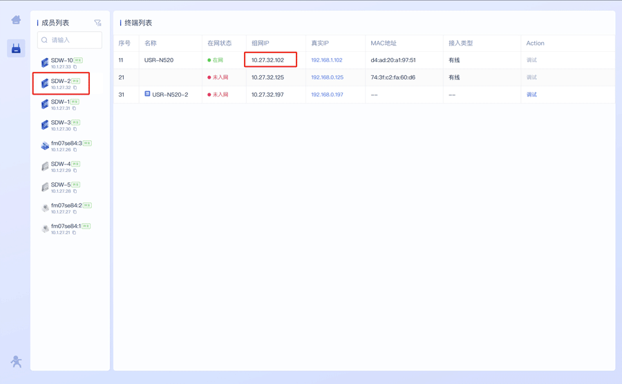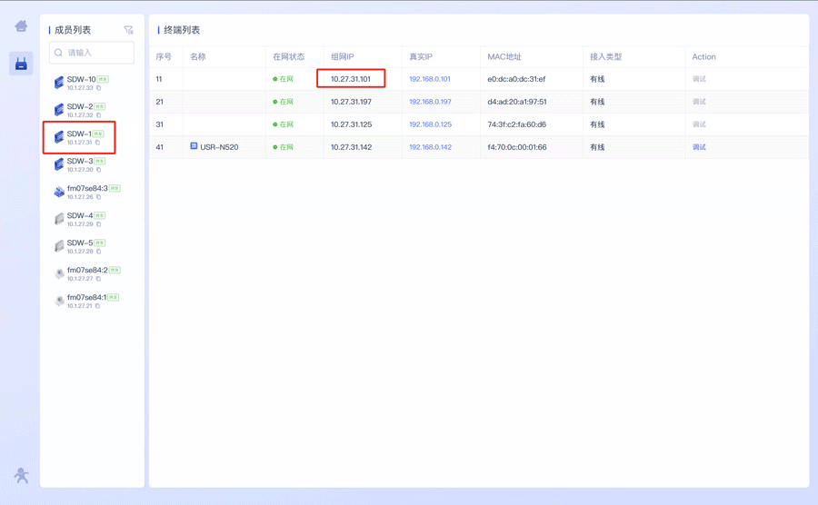④自动认亲:成员下终端自动入组网网关成员自带"母鸡带崽"属性,成员下的PLC、摄像头等网库或WiFi类终端(DHCP/静态IP)均可自动入网,告别手动配置。