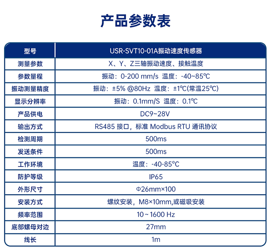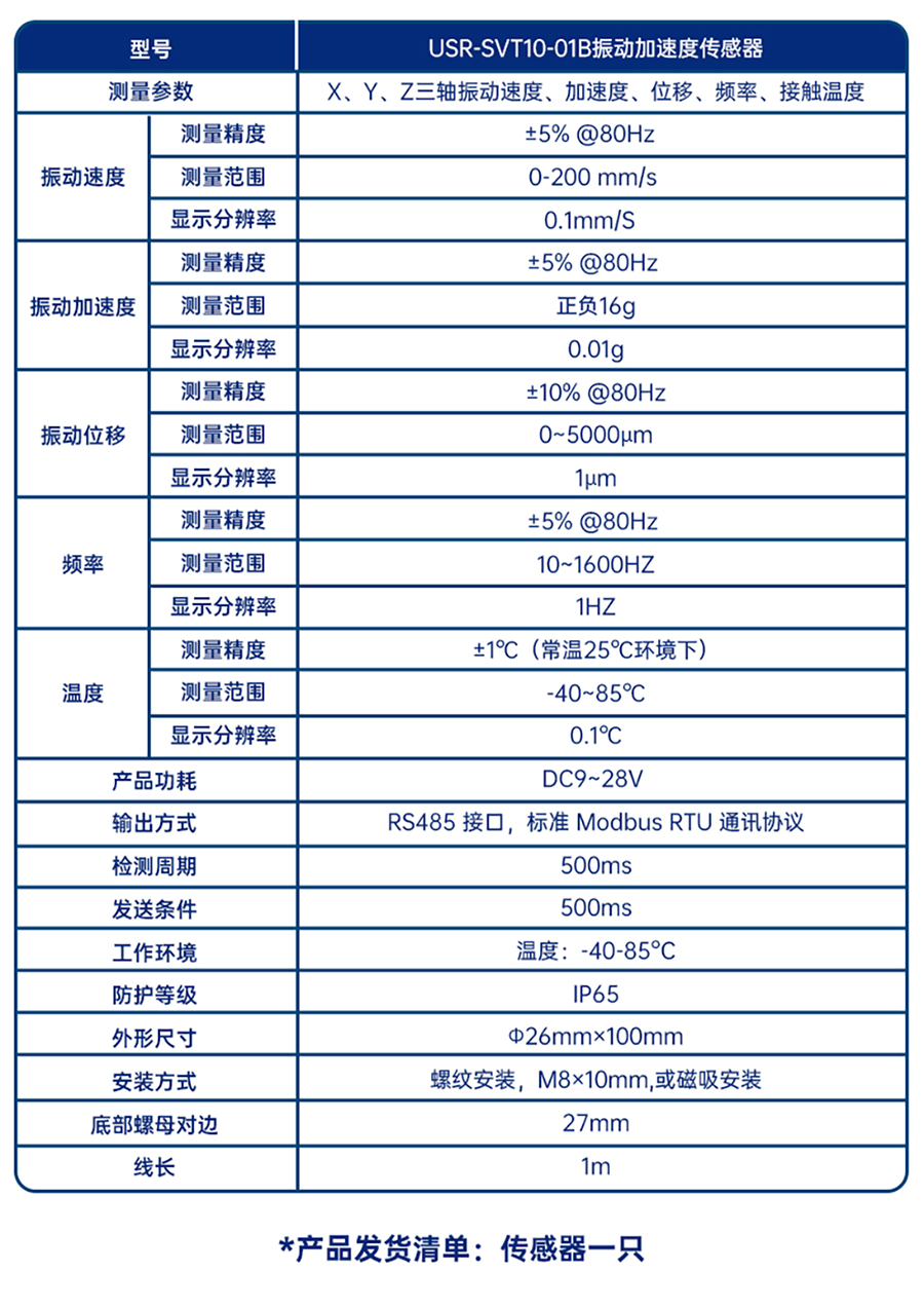 USR-SVT10-01B振动加速度传感器