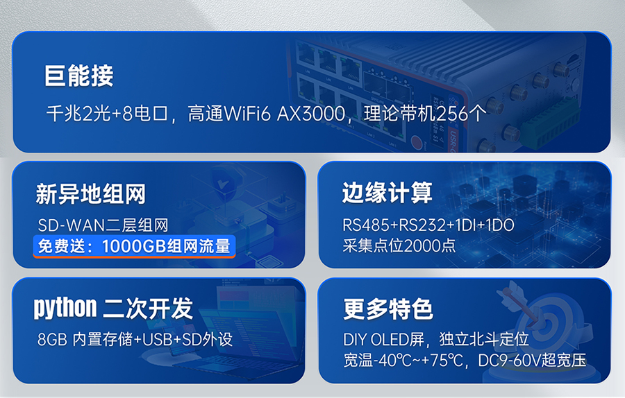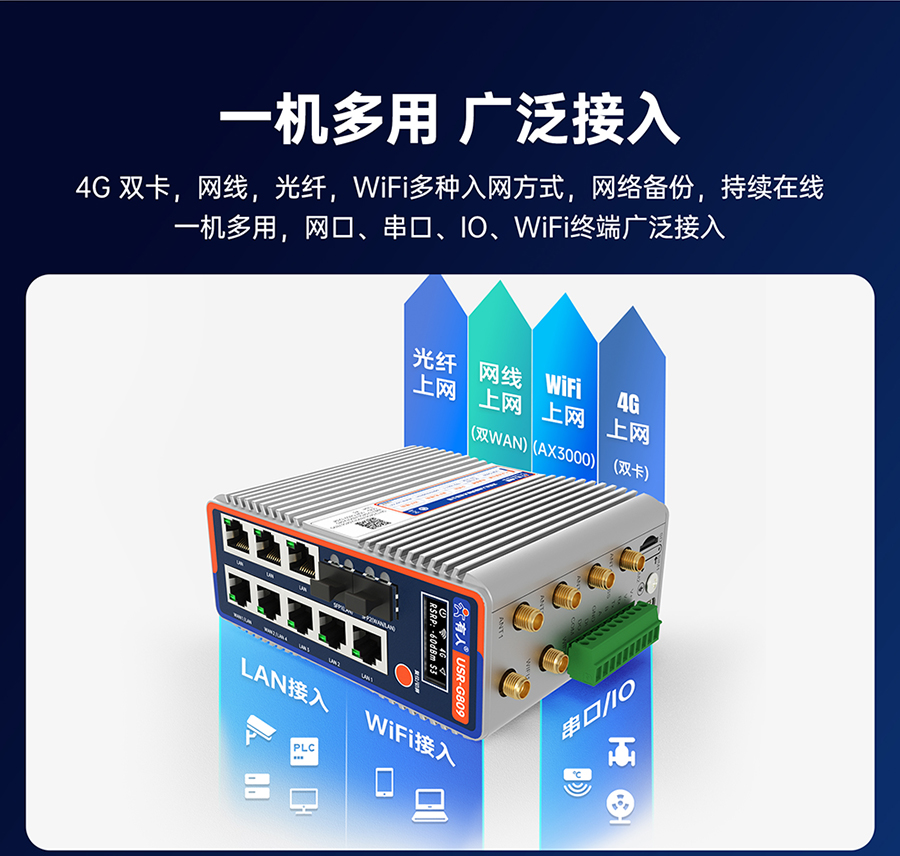 2*WAN/LAN+6*LAN+2*SFP;其中SFP: 1WAN/LAN(电光二选一)+1LAN