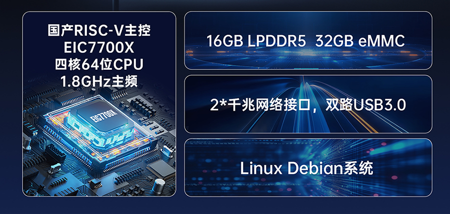 EIC7700X 64-bit RISC-V RV64GC 4-core processors@1.4GHz, up to 1.8GHz
