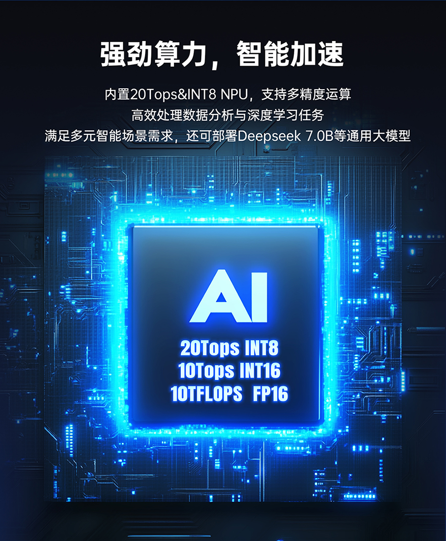 Up to 20TOPS in INT8, 10TOPS in INT16, and 10TFLOPS in FP16
