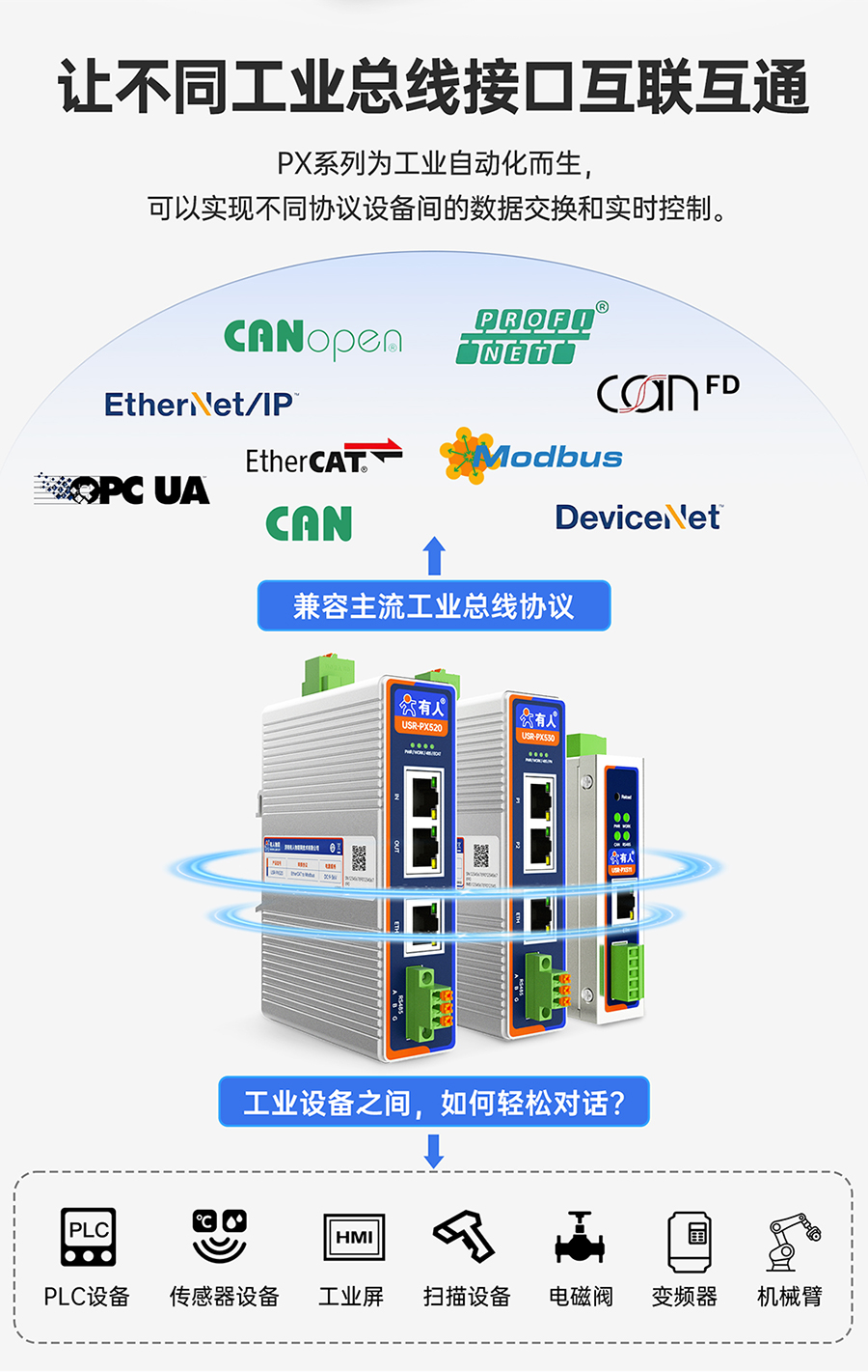 以上困境,交给J9九游会全新推出的工业总线转换器USR-PX系列!我们比任何人都清楚:稳定、兼容、成本才是工控刚需!